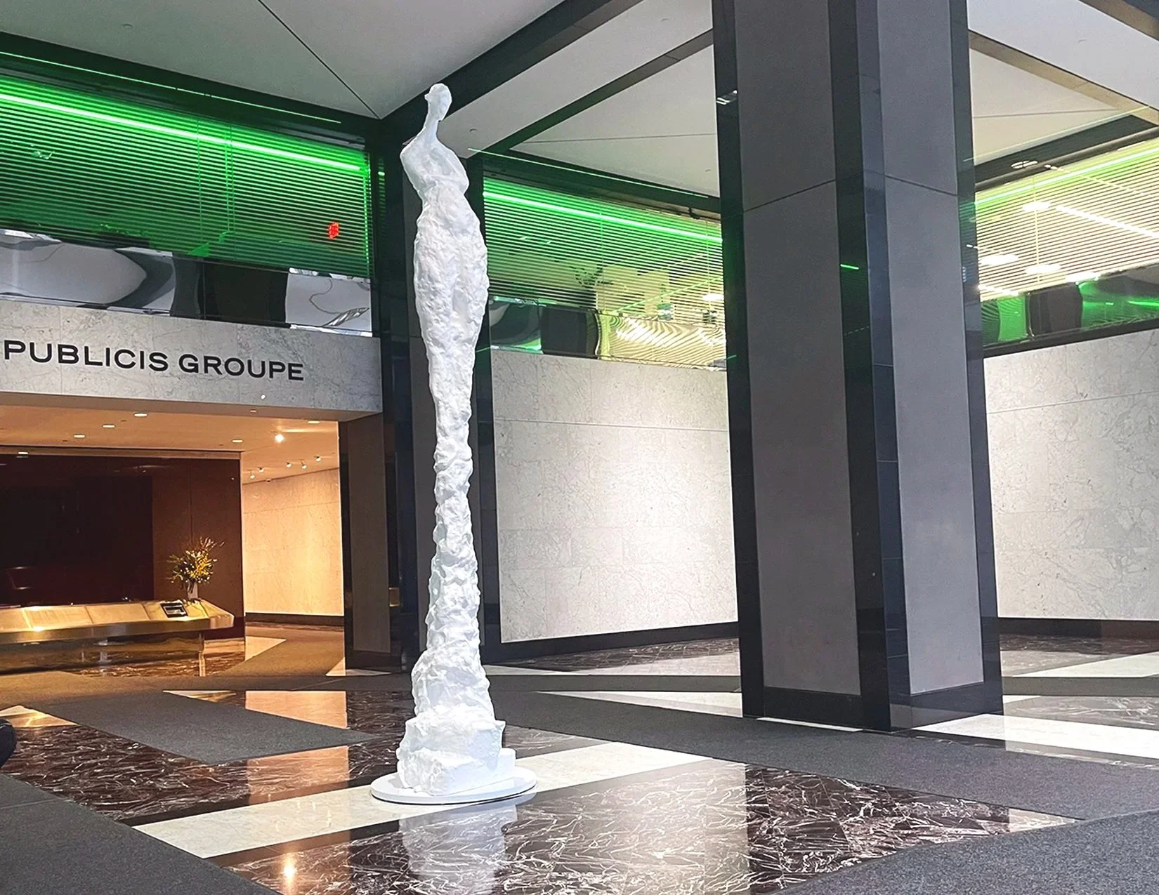 Soaring 18-feet into the air, Reflect is a site-specific sculpture commissioned by Hines for the elegant lobby of 375 Hudson Street in Tribeca